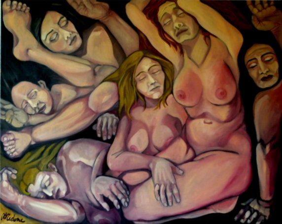 La nudità è un tema ricorrente nei miei dipinti e rappresenta l’incapacità di difendersi dal proprio destino, il non aver alcun riparo contro le avversità.
