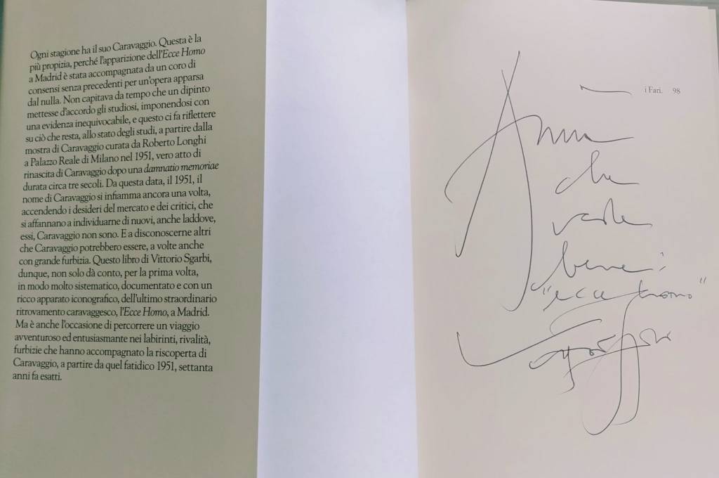 In seguito, qualche mese dopo, Sgarbi pubblicò il suo libro Ecce Caravaggio nel quale parlava appunto del ritrovamento e di tutta la letteratura riguardante il tracciamento dell’opera dall’Italia alla Spagna, nonché delle recensioni delle opere dell’autore lombardo.