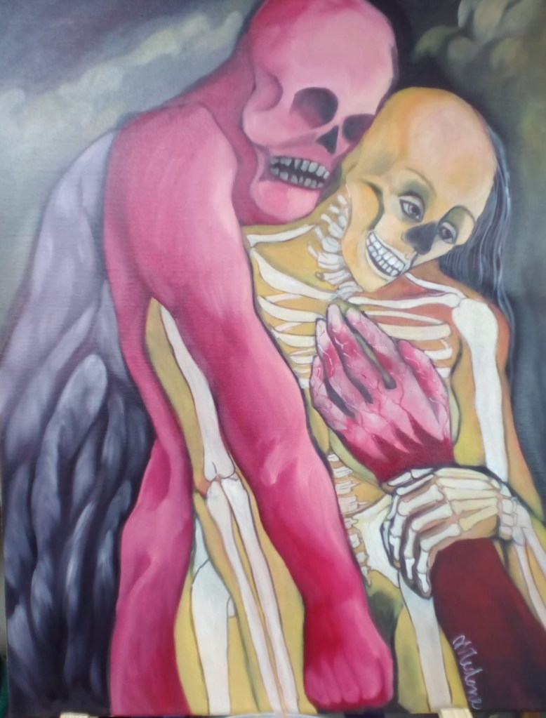 Ménage à trois I – Love, Life, Death Ménage à trois I – Love, Life, Death – Oil on canvas – 80 x 60 cm Share this: Click to share on X (Opens in new window) X Click to share on Facebook (Opens in new window) Facebook Like Loading...